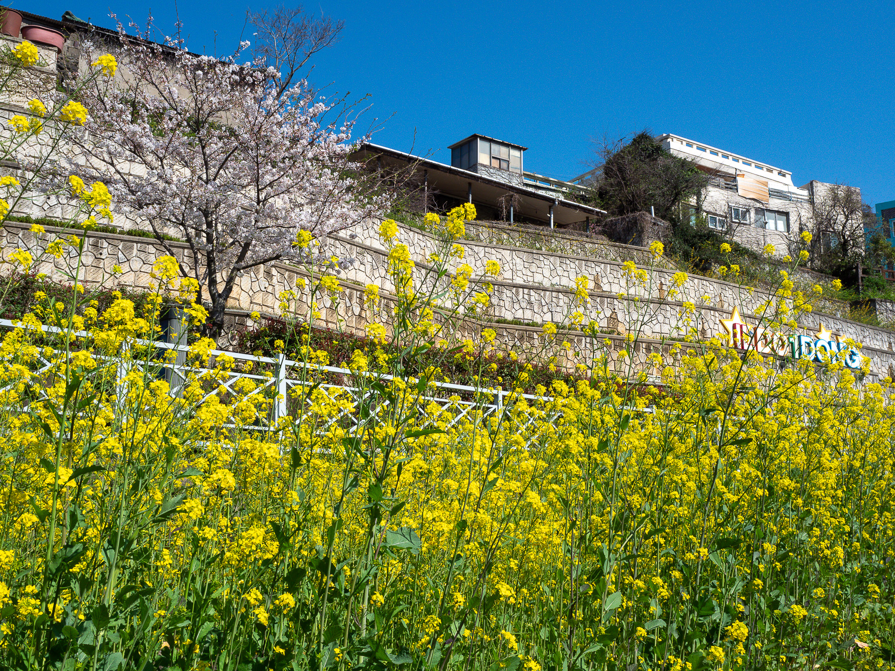 Shortly after our arrival, our host sent us the info of Seogwipo Rapeseed Festival (서귀포유채꽃축제는) which was to be held in the next 2 days. Not only that it is a famous event held annually in the end of March when rapeseed (a.k.a. canola) flowers are in full bloom, cherry blossoms usually start about the same time. The venue Rape Flower Plaza (유채꽃 프라자) is well-known for having both cherry blossoms and rapeseed flowers fighting for attentions along both sides of a long stretch of Noksan Road. Unfortunately due to the short notice, we couldn't manage to rent a car nor get a taxi to attend the event.
