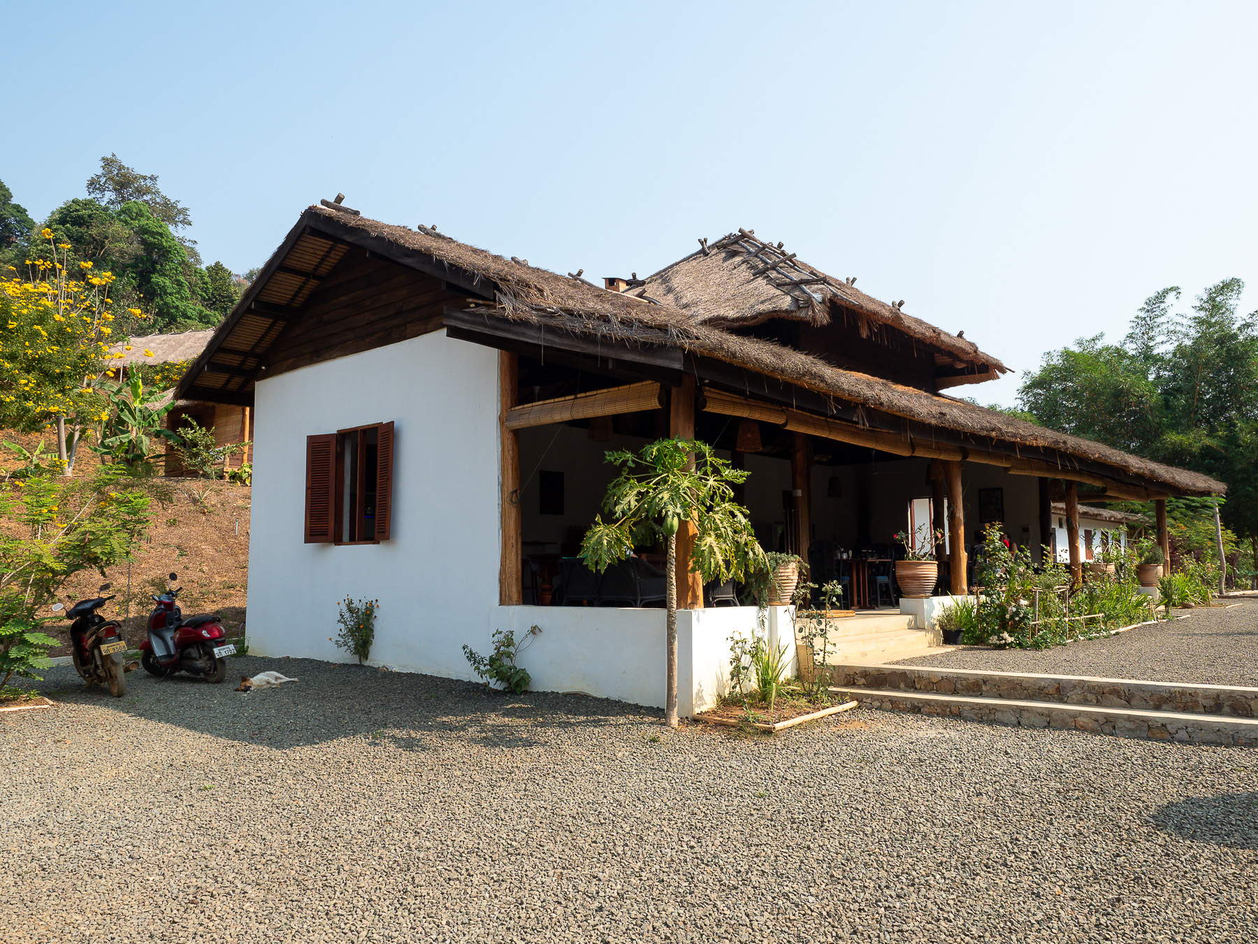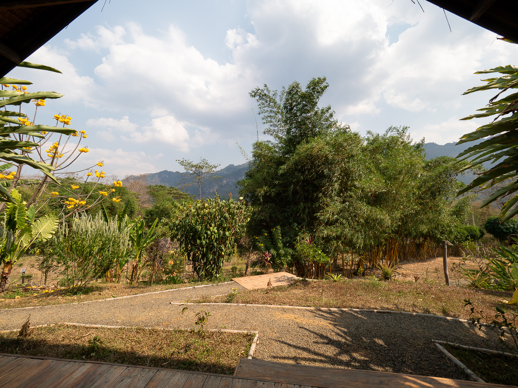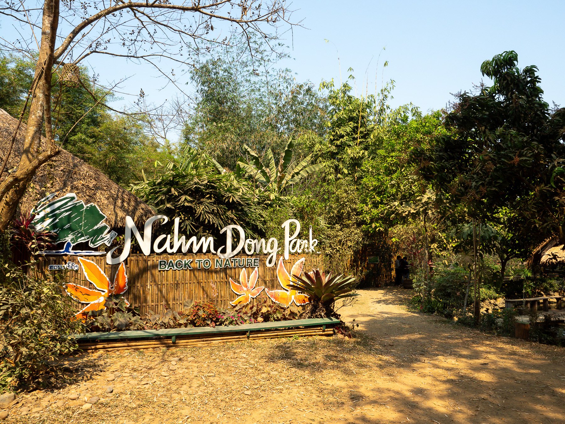 After spending a few days near the buzzing old quarter sightseeing and all that, we went to the countryside and stayed at Naga Lodge for 3 nights. Away from the hustle and bustle, it's a perfect place to relax. Although just 7km from the old town, the last stretch of dirt road made the whole motorbike journey an hour long even in good weather. We arrived covering with a layer of dirt. Fortunately the lodging was comfortable with an open view of mountains and paddy fields. More importantly, it's a short walking distance to Nahm Dong Park.