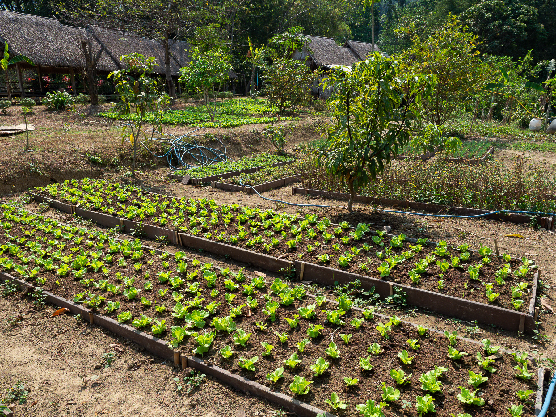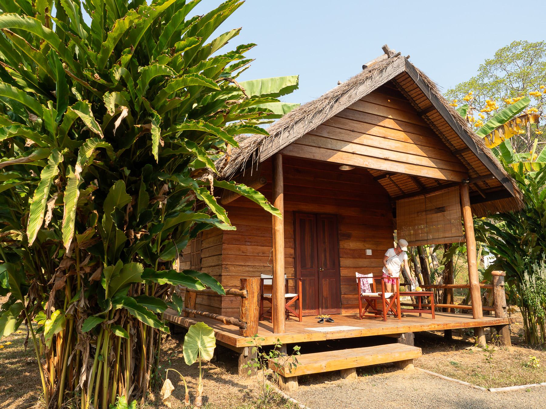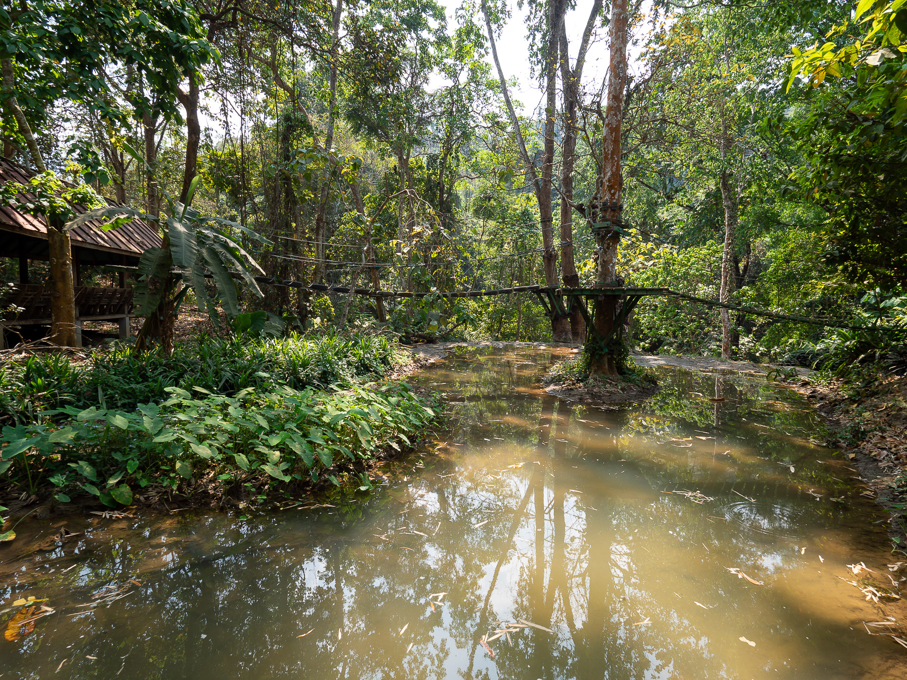 After spending a few days near the buzzing old quarter sightseeing and all that, we went to the countryside and stayed at Naga Lodge for 3 nights. Away from the hustle and bustle, it's a perfect place to relax. Although just 7km from the old town, the last stretch of dirt road made the whole motorbike journey an hour long even in good weather. We arrived covering with a layer of dirt. Fortunately the lodging was comfortable with an open view of mountains and paddy fields. More importantly, it's a short walking distance to Nahm Dong Park.