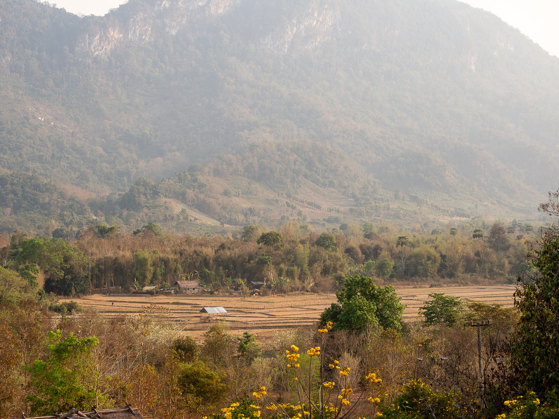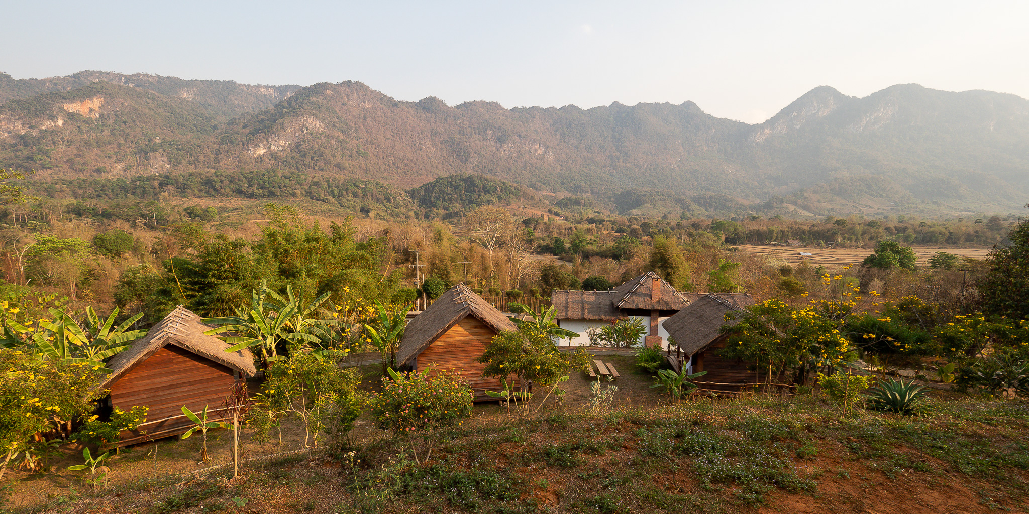 After spending a few days near the buzzing old quarter sightseeing and all that, we went to the countryside and stayed at Naga Lodge for 3 nights. Away from the hustle and bustle, it's a perfect place to relax. Although just 7km from the old town, the last stretch of dirt road made the whole motorbike journey an hour long even in good weather. We arrived covering with a layer of dirt. Fortunately the lodging was comfortable with an open view of mountains and paddy fields. More importantly, it's a short walking distance to Nahm Dong Park.