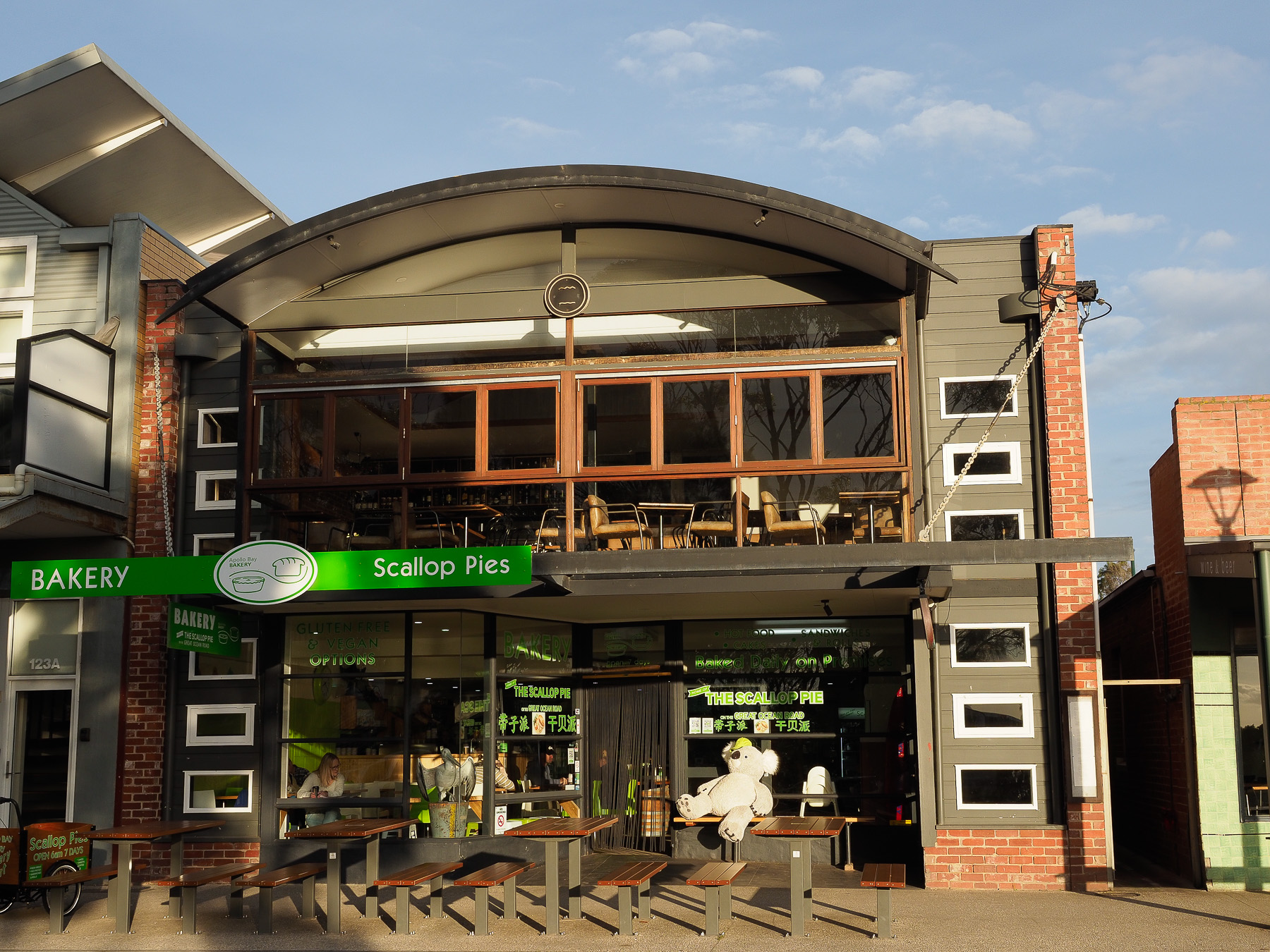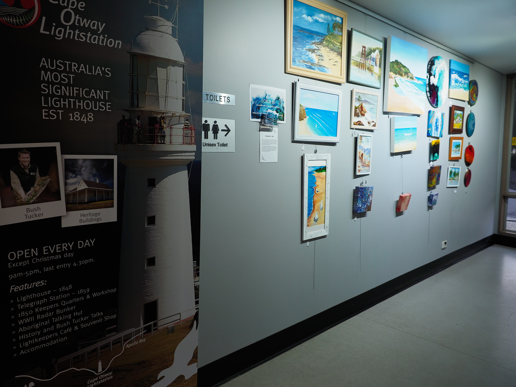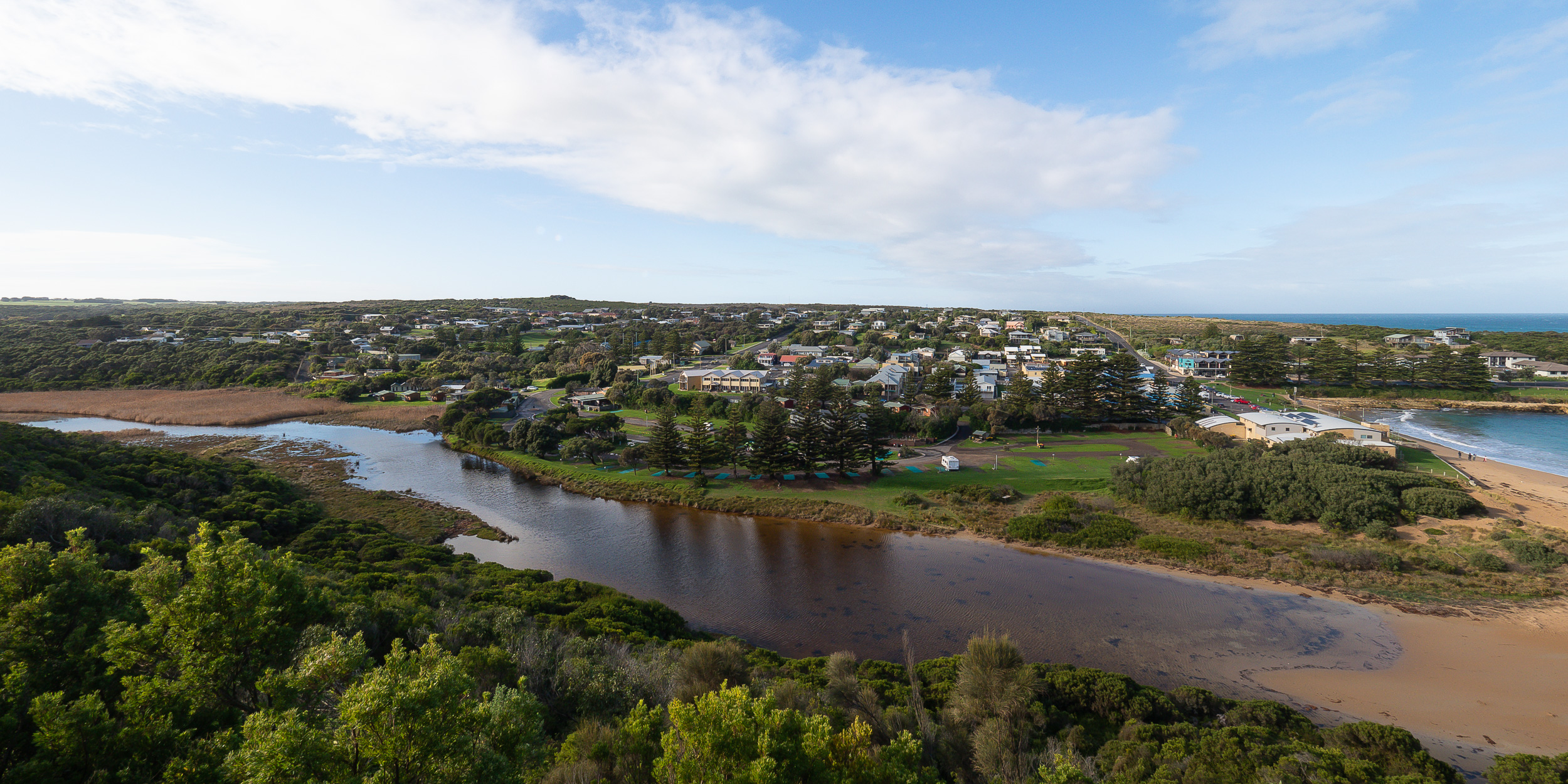 | Apollo Bay Bakery | Apollo Bay Seafood Cafe | Bay of Islands | Bay of Martyrs | Cape Otway Lightstation | Chris's Beacon Point Restaurant & Villas Accommodation | Erkine Falls | Great Ocean Road Brewhouse | Great Ocean Road | Loch Ard Gorge | London Bridge | Mariner's Lookout | Port Campbell Discovery Walk | Port Campbell Guest House | Port Campbell Jetty | Teddy's Lookout | The Arch | The Grotto | Twelve Apostles | Waves Cafe Bar and Restaurant | Aireys Inlet | Apollo Bay | Cape Patton | Castle Cove | Eastern View | Lorne | Skenes Creek |